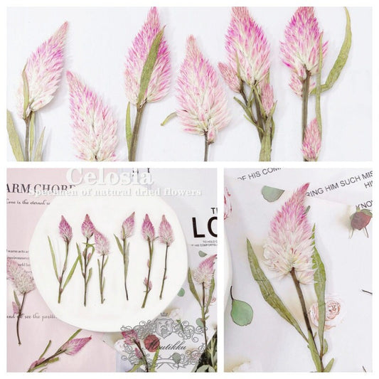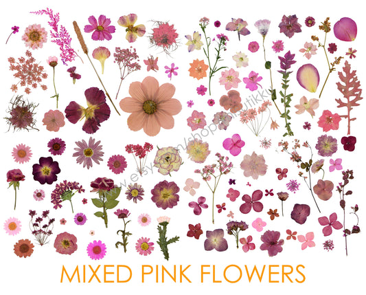 20 PCS Set (6-9CM) Dried Pressed Flower with Stems, Real Pressed Pink Flower, Pink Pressed Dried Flowers, Preserved Dried Flat Flowers