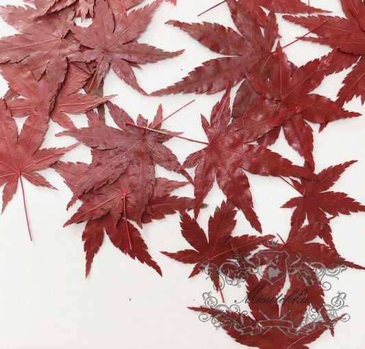 20 PCS Set (4-8CM) Dried Pressed Leaves, Red Dried Maple leaves, Preserved Dried Real Autumn Maple Leaves, Pressed Flower Flat Leaves