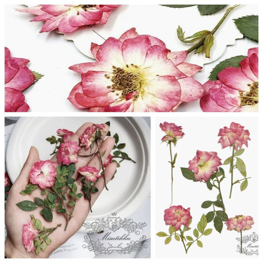 20 PCS Set (6-10CM) Pressed Dried Rose Flower Stems, Dried Pressed Flowers Rose Buds, Preserved Real Flowers, Flat Dried Rose Pressed Flower