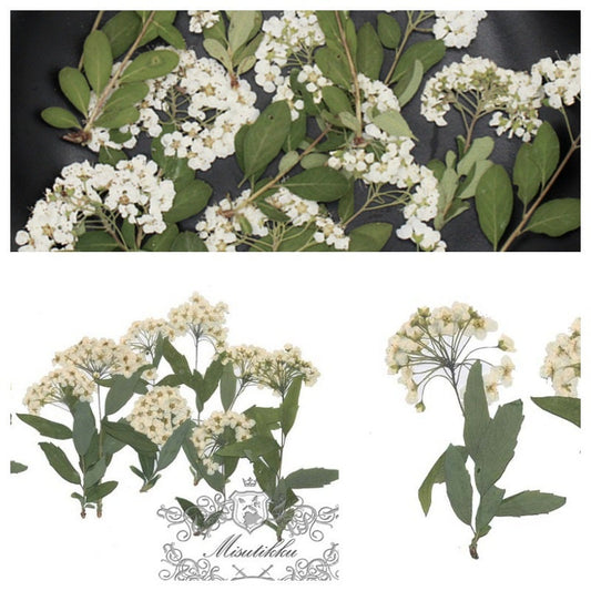 20 PCS Set (4-7CM) Real Pressed White Flower with stems, Dried Pressed Bridal Wreath Flower Stems, Pressed Dried Ivory White flat flowers
