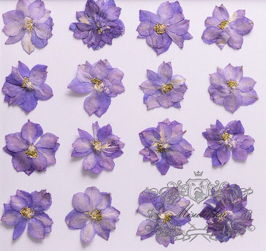 20 PCS Set (2.5-3.5CM) Pressed Flower Light Purple Larkspur Preserved Dried Purple Flowers Natural Real Larkspur Dry Flat Purple Flowers