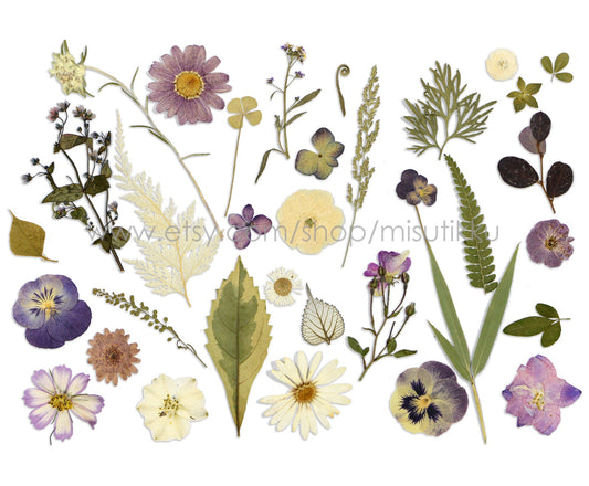 20 PCS SAMPLE PACK Mixed Pressed Flower, Dried Real Flowers, Flat Dried Flowers, Preserved Flower Dried Leaves Bulk, Dried Pressed Leaves,