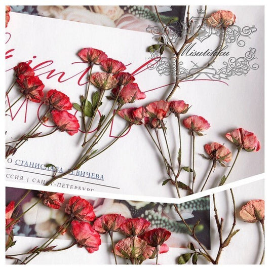6 PCS/Set (5-7CM) Pressed Rose Stems, Pressed Real Dried Flowers, Red Rose Dried Flowers, Pressed Dried Rose, Dried Pressed Flower Stems