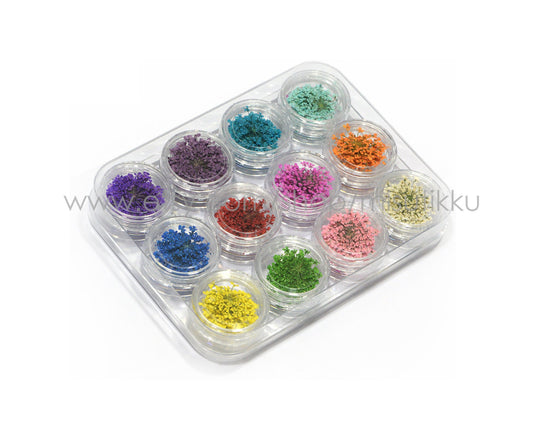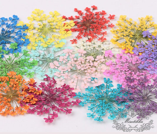 36 PCS / Box (1-1.5CM) Pressed Queen Anne's Lace Real Tiny Dried Nail Flower Tiny Assorted Pressed Flowers for Nail Art Glass Globe Filler