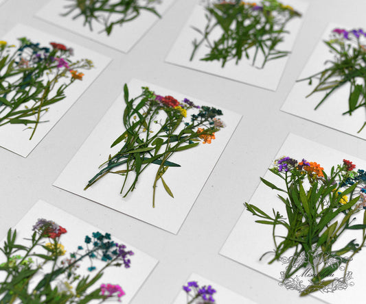 20 PCS Pack (5-7CM) Mixed Pressed Alyssum Flower, Pressed Dried Flowers Alyssum, Preserved Wild Dry Flower with Stems, Real Flat Flower Bulk