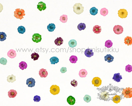 20 PCS Mixed Color Real Dried Pressed Flower Flat Flowers Assorted Bridal Wreath Jewelry Floral Frame Invitation Paper Goods (0.4-0.6CM)