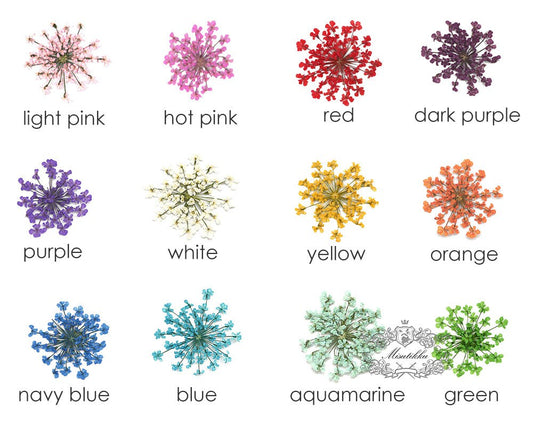 A Box X 12 Color (140 PCS) Pressed Flower Queen ANNE's Lace Dry Pressed Real Flowers Dried Wildflower Preserved Flowers Preservation Petals