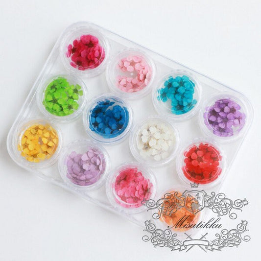 140 PCS /Box X 12 Color (0.5-0.8CM) Pressed Small Flower, Dry Flat Flower, Pressed Dried Flowers For Nail, Tiny Pressed Flower For Nail Art
