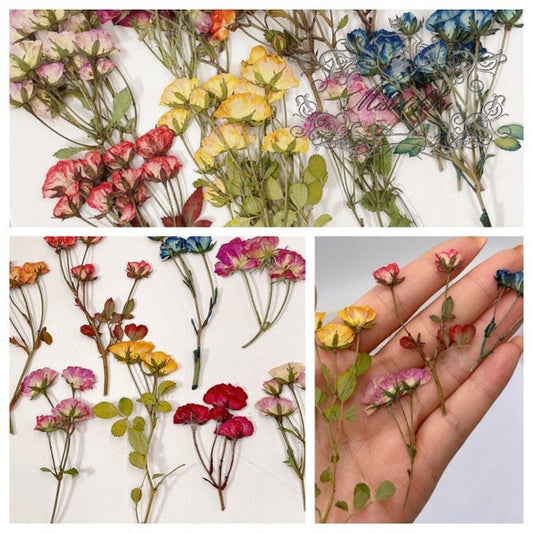 20 PCS Set (5-7CM) Mixed Pressed Dried Roses, Dried Rose Flower Stems, Red Rose Buds, Flat Pink Roses, Pressed Blue Roses, Dried Yellow Rose