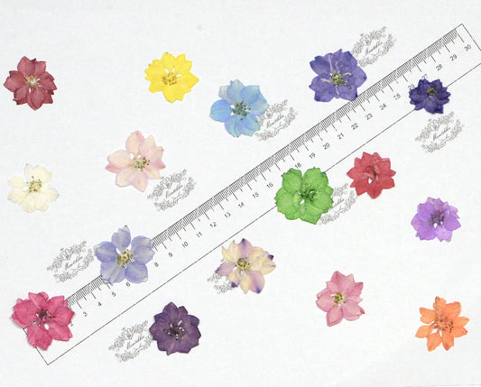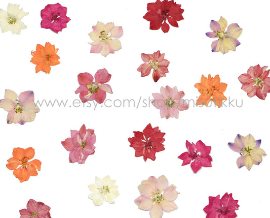 20 PCS/Set (2.5-4CM) Pressed Larkspur Flowers Real Dried Larkspur Preserved Pink Red Larkspur White Orange Dry Larkspur Flat Flowers