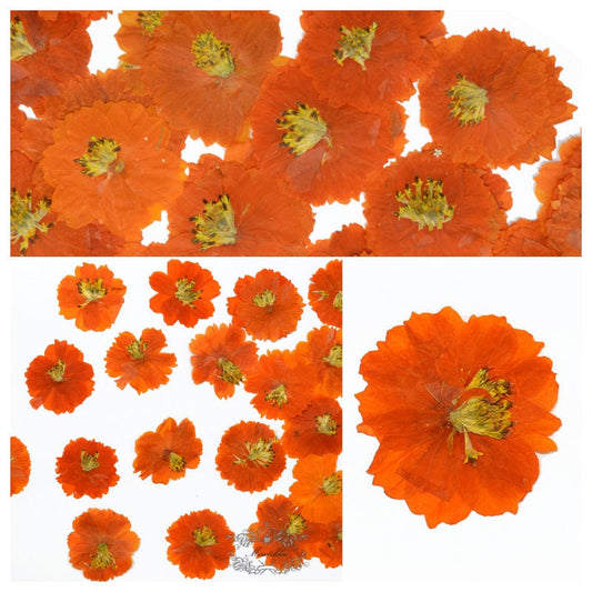 20 PCS Set (4-6CM) Pressed Cosmos Flowers, Orange Dried Cosmos Flower, Real Pressed Dried Flowers, Pressed Flower dried Orange Flat Flower