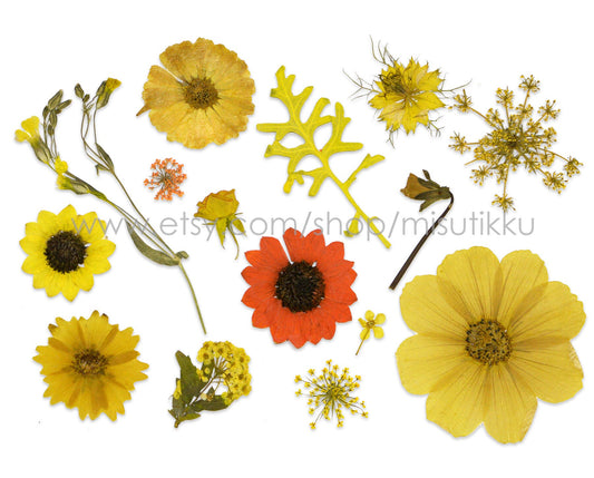 20 PCS Set Dried Pressed Yellow Flower Bulk, Real Pressed Orange Flower Stems, Flat Pressed Flower,Pressed Dried Flower Variety Pack