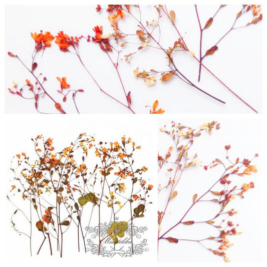 20 PCS Set (12-20CM) Pressed Dried Flowers Pressed Orange Flower Stems, REAL Dried flower Stems, Preserved Dried Flowers, Flat Orange Flower