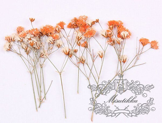 20 PCS Set (4-6CM) Pressed Dried Baby's Breath Flowers, Orange Flat Flower Stems, Pressed Orange Gypsophila Flowers, Preserved Real Flower