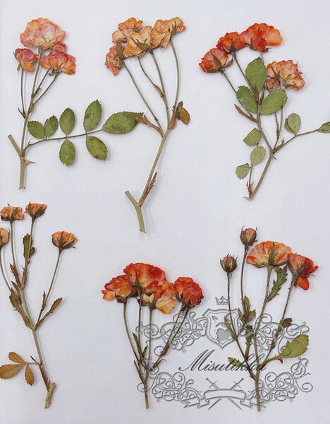 6 PCS/Set (5-7CM) Pressed Flower Orange Roses, Pressed Dried Flowers, Pressed Roses Flower, Real Rose Dried Flower, Preservation Flat Roses