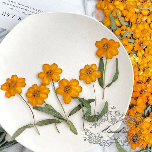 20 PCS Set (4-6CM) Pressed Dried Flower, Real Daisy Flower Stems, Orange Dried Flower Stems, Pressed Orange Flowers, Preserved Flat Flowers