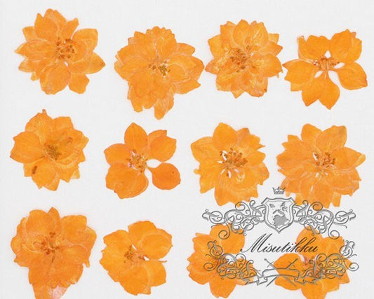 20 PCS/Set (3-3.5cm) Natural Pressed Orange Larkspur Flower Preserved Real Dried Flat orange Wildflowers Larkspur Flowers Dry flower Petals