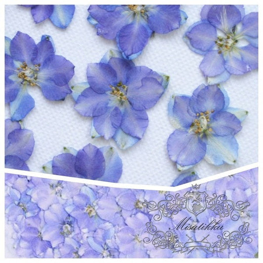 20 Pcs/Set (2.5-3.5CM) Dried Pressed Blue Purple Larkspur Flower Natural Presesed Real Blue Larkspur Dry Flat Preservation Dried Flowers