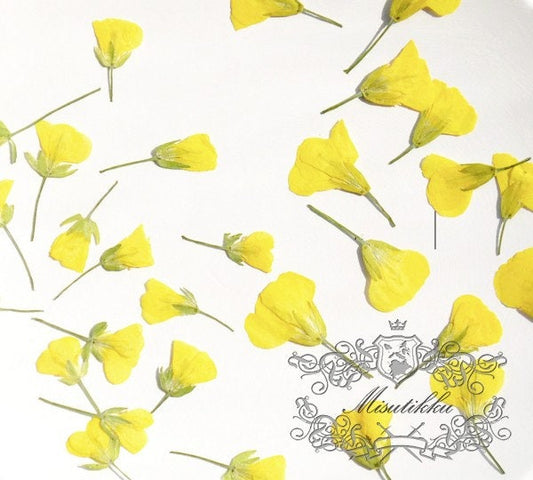 20 PCS (0.8-1.5CM) Pressed Small Flowers, Real Yellow Cole Flower, Tiny Flower Buds, Dried Tiny Flower, Preserved Dry Yellow Flat Flowers