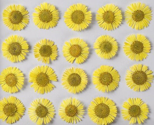 20 PCS Set (0.5-0.8CM) Real Dried Fleabane Yellow Flower, Pressed Dried Flowers, Real Pressed Flat Dried Flower, Preserved Tiny Flowers