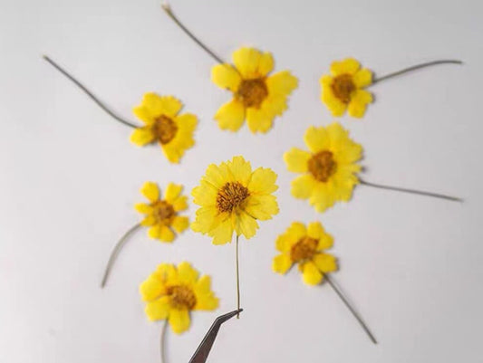 20 PCS Set (6-9CM) Pressed Dried Flower Stems Real, Flat Pressed dried Yellow Flowers, Yellow real Flower