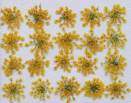 20 PCS (1-2CM) Pressed Small Flowers, Real Yellow Flower, Pressed Dried Queen Anne's Lace Flower, Preserved Yellow Flat Flowers For nails