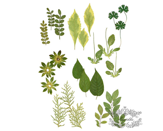 20 PCS Set Pressed Green Leaves, Pressed Dried leaves, Pressed Green Fern, Pressed Flower Leaf, Flat Preserved Leaves Dried Foliage Greenery