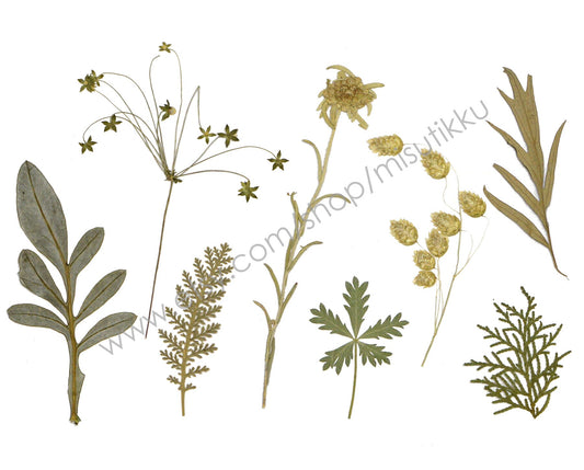 Set of 20 PCS Mix Assorted Pressed Leaves Real Dry Winter Leaves Flowers Dried Silver leaf Mixed Floral Preserved Greeny Foliage Fern Stems