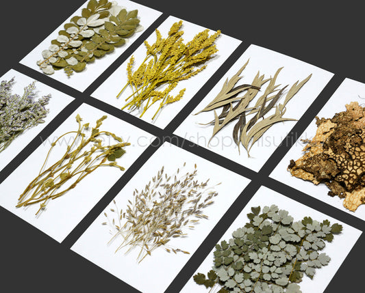 Set of 20 PCS REAL Pressed Grass Leaves Pressed Dried Flowers Stems Brown Leaf Flat pressed flower green Dry Fern foliage Floral Leaf Greeny