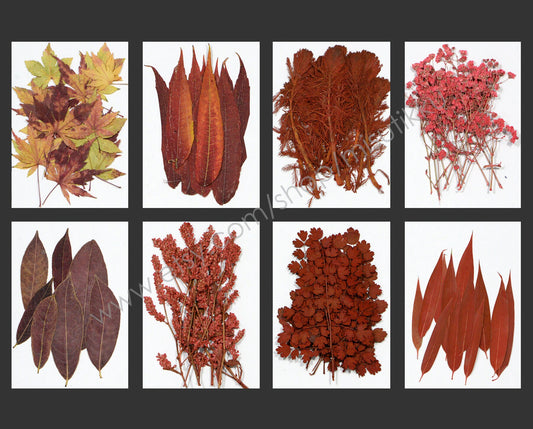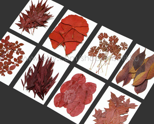 A Pack of 20 PCS Dried pressed Autumn fern leaves pressed flowers pressed Red Real leaves Stem Dry Flat leaf Herbarium green foliage (3-6CM)