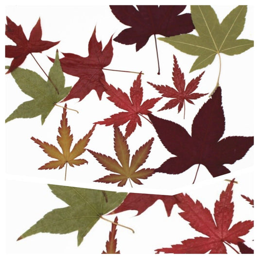 20 PCS Set (4-8CM) Pressed Maple Leaves Mix Assorted Color Flower Ferns Brown Dry Autumn Green Maple Leaf Dried Red Leaves Flat Leaf